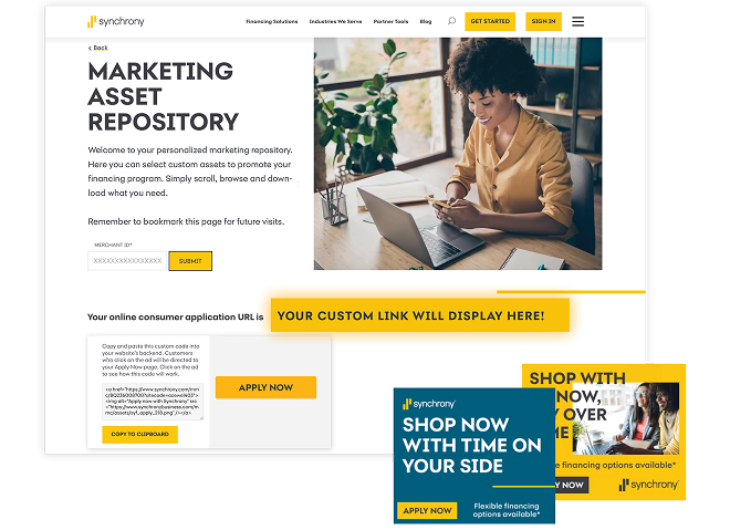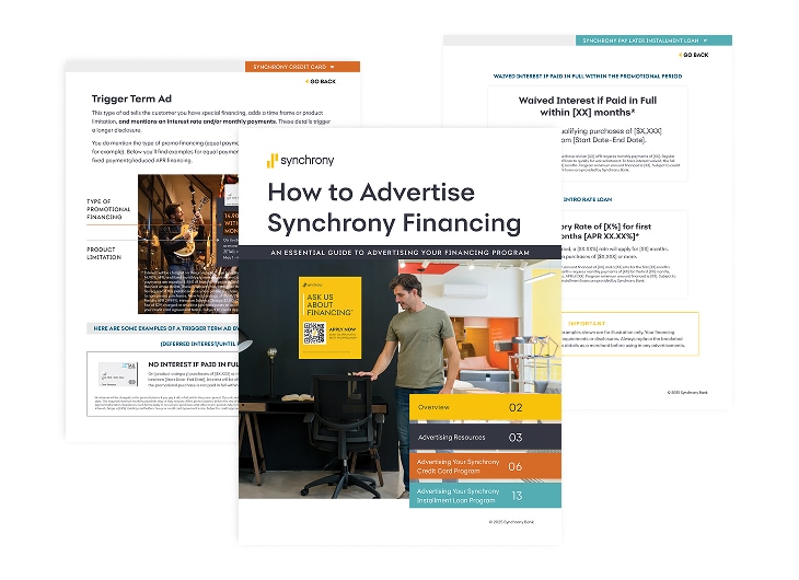 Access compliant marketing and advertising resources to promote your Synchrony financing program and help drive sales.